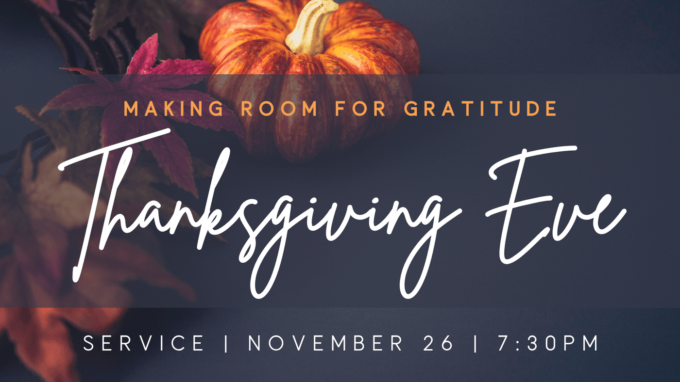 Thanksgiving Eve ServiceBefore the busyness of the Holiday Season begins, we'd love for you to slow down with us. Join us on November 26th at 7:30PM for a simple, peaceful evening to slow our place and thank God for his steady provision. Invite your friends and family, and together, let's step into the season at His pace, grateful and unhurried.